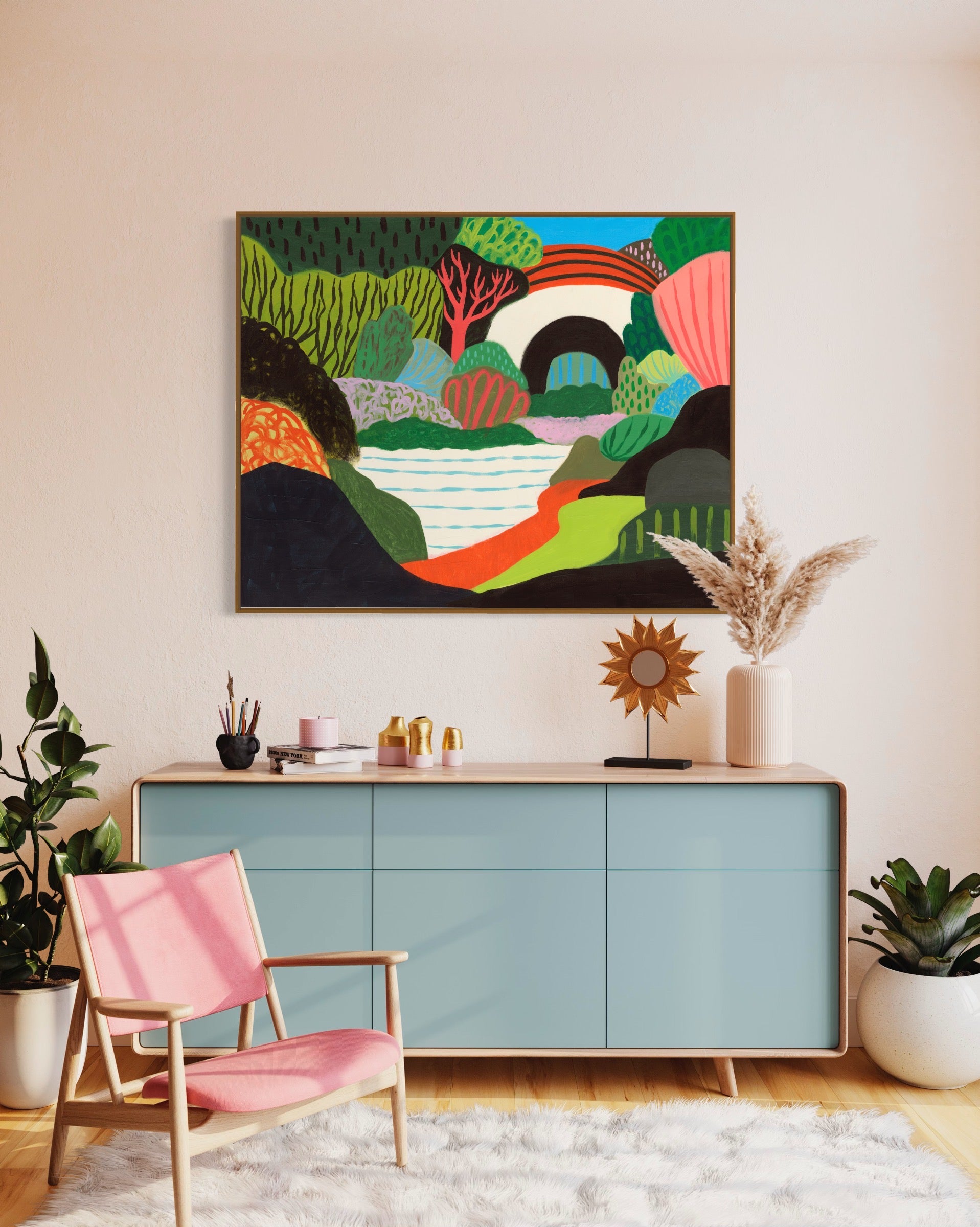 Did you know that staring at beautiful art can improve your mood, enhance focus, and reduce stress? Sure can. So next time you need a boost, lose focus or feel stress weighing on you, take a moment to feel the magic by getting lost in our colorful abstract landscapes.